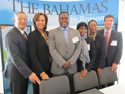 Promoting the best of The Bahamas: Executives of The Grand Bahama Port Authority, Limited (GBPA) accompanied a 6 member team of officials from the Bahamas Investment Authority (BIA), including Minister of State for Investment in the Ministry of Finance, the Hon. Khaalis Rolle, to the American Lodging & Investment Summit (ALIS) taking place in Los Angeles, California. Pictured from left to right: Mr. Ian Rolle, GBPA President; Mrs. Joy Jibrilu, Director of Investments, BIA; Minister of State for Investment in the Ministry of Finance, the Hon. Khaalis Rolle; Mrs. Ginger Moxey, GBPA VP; Mrs. Julie Campbell, Deputy Permanent Secretary, BIA and Mr. Graham Torode, CEO DEVCO.