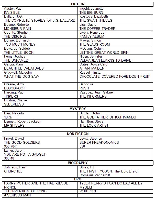 to Fiction, Mystery, and Non-Fiction books new to the Library. You can